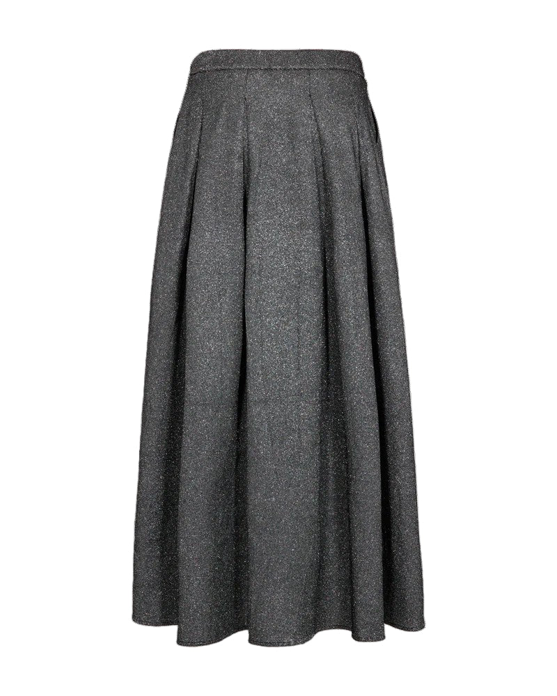 CMSHINMI-SKIRT is a skirt in a super soft material with black and silver glitter mix and lining. In addition, the skirt has a concealed side zip fastening, side pockets and wide pleats that add an elegant, pleated look.