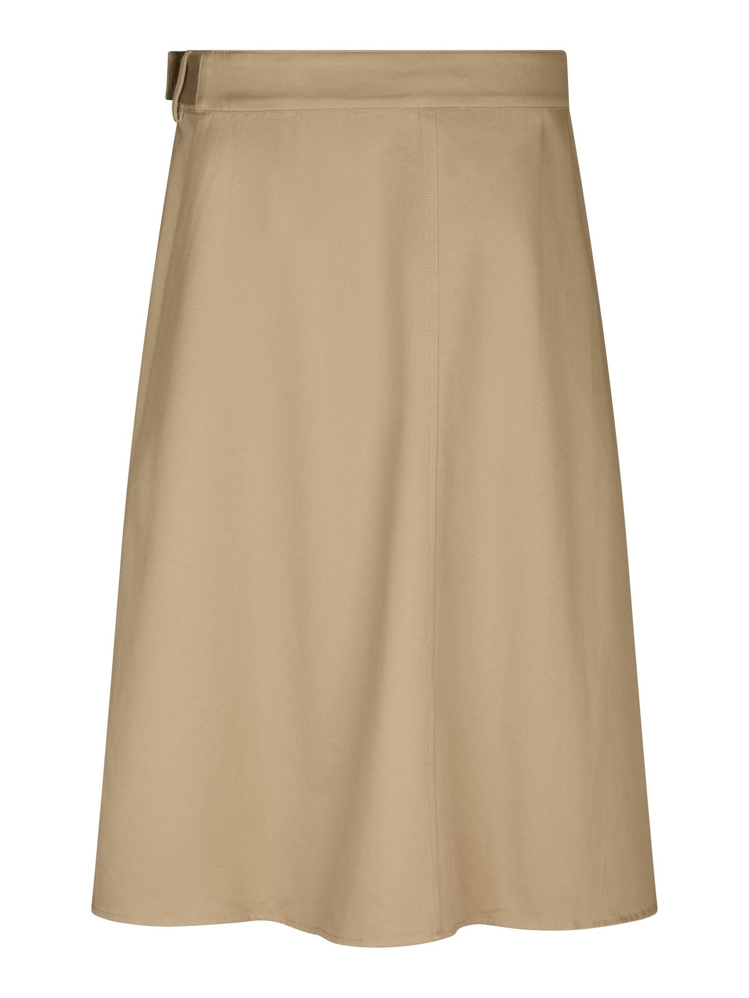 Midi long skirt with wrap effect and pleats. The closure is with a belt buckle and the model is 176cm and wears a size 36.