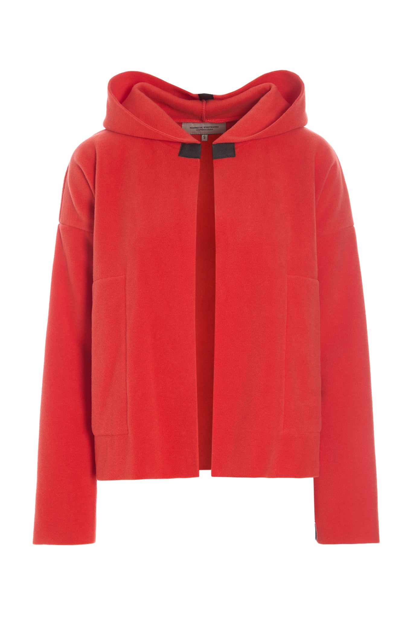 Open cardigan in sporty design with hood. Use it with a pair of jeans for a classic-sporty look or close it with a belt for a more feminine finish.