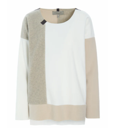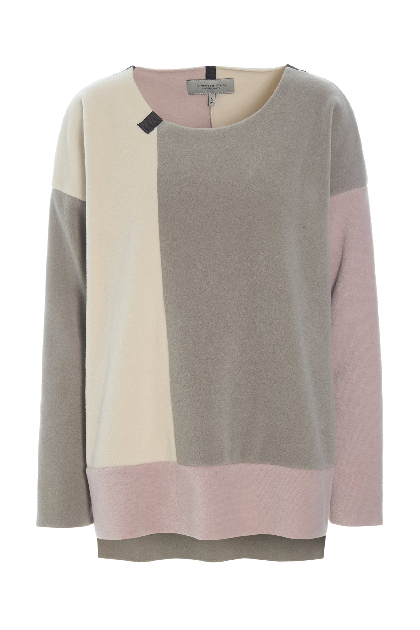 Multi-coloured box-shaped sweater with high neck. The sweater is longer in the back and has slits up the sides. As part of our PATCH line, this sweater comes in different combinations of our classic, soft colours.