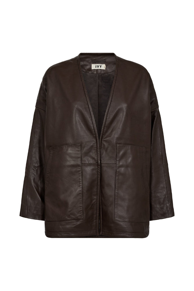 Our Kylie Leather Cardigan, a versatile piece that combines luxurious leather with a contemporary design. Perfect for layering, this cardigan adds a touch of sophistication to any outfit.