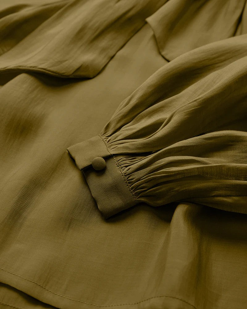 CMTILLY BLOUSE is a blouse in an exclusive quality with an extravagant, detachable bow detail on the high collar, pleat details, a slit with fabric buttons on the back, as well as long raglan sleeves with a voluminous balloon effect and button closure. Extravagant detachable bow detail High collar Pleat details Loose fit Long raglan sleeves with voluminous balloon effect