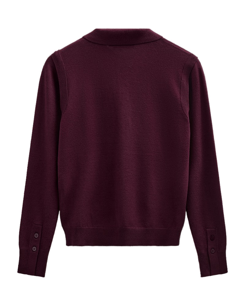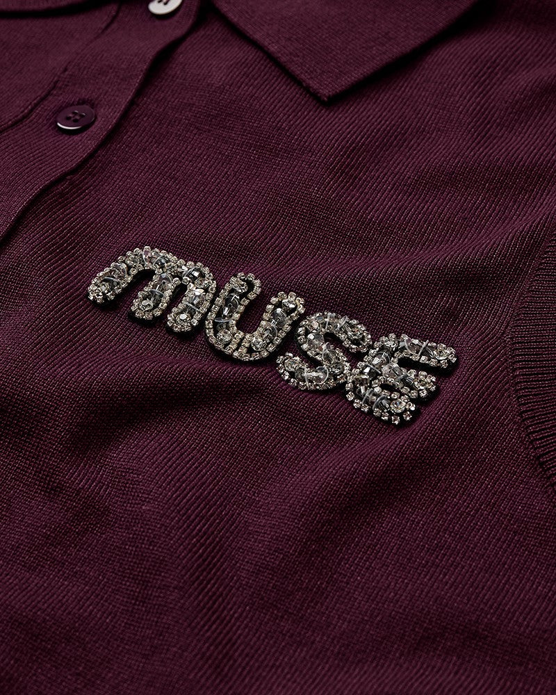 CMVERAN-POLO is a long-sleeved polo shirt in a premium material with a fine-knitted texture, ribbing as well as a logo detail on the chest with sequins and small rhinestones.