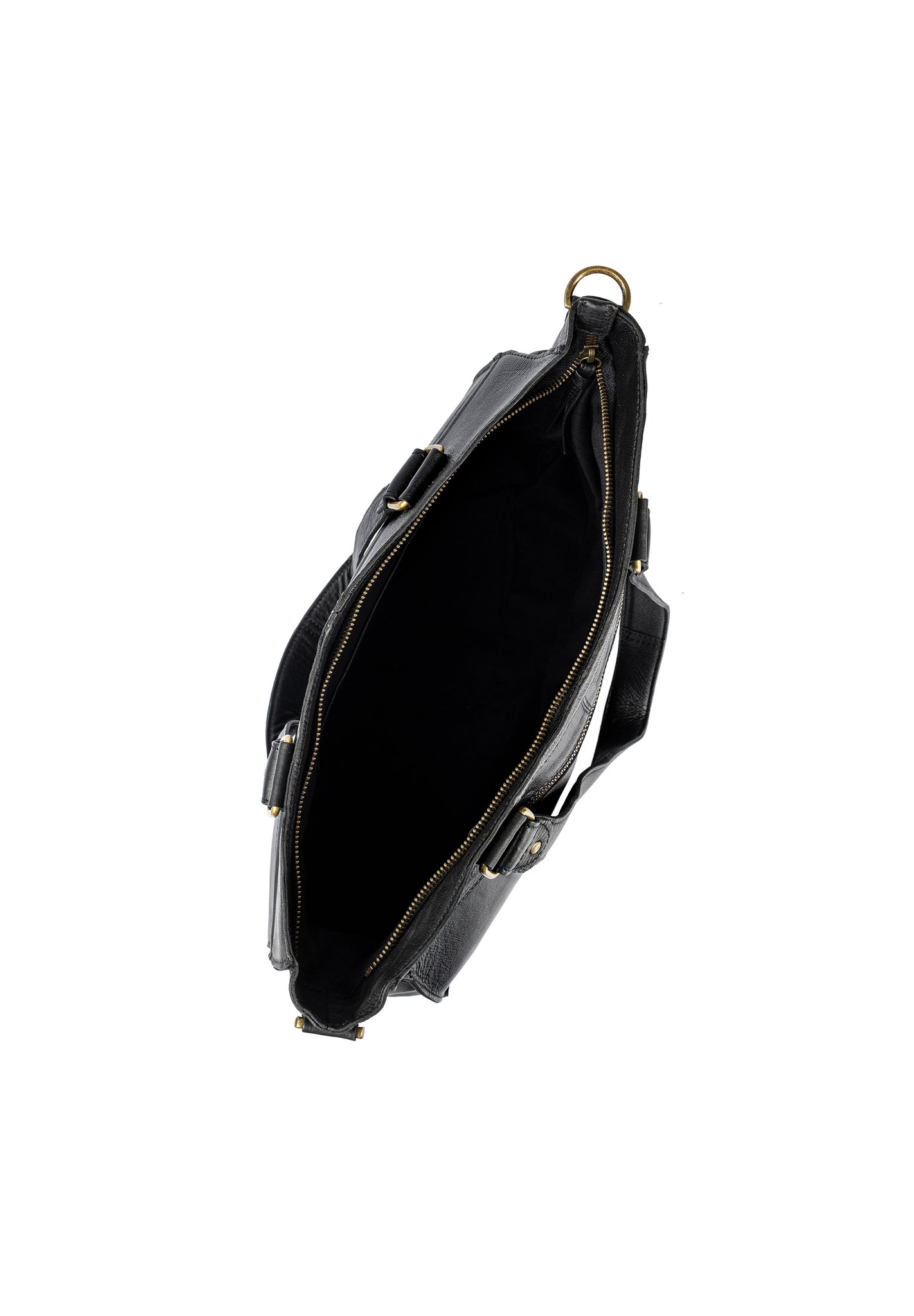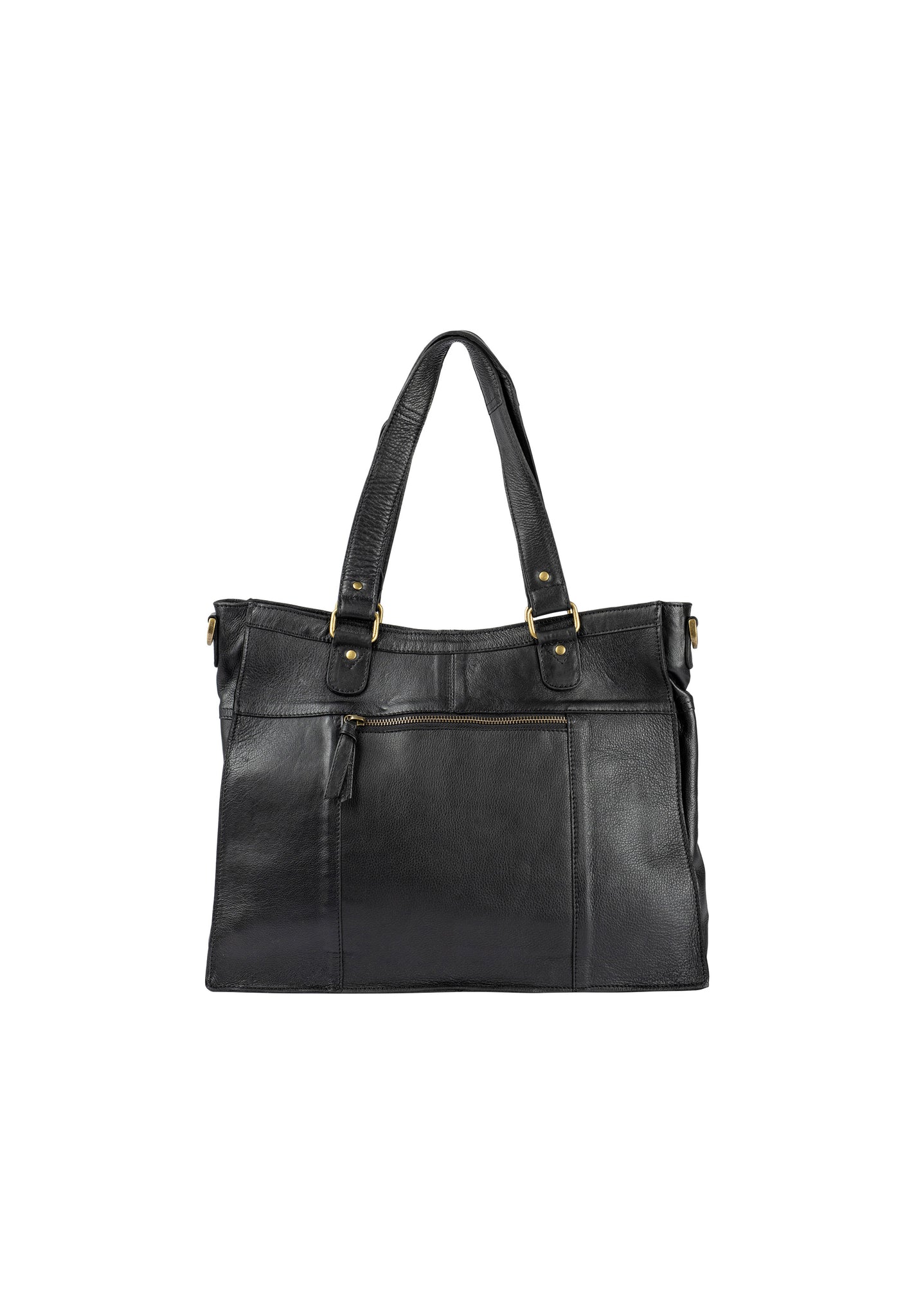 Timelessly designed large leather bag with zip top closure, shoulder handle, and adjustable/removable long strap. The leather gains a beautiful patina over time, showcasing a unique character. Accommodates a 15" laptop.