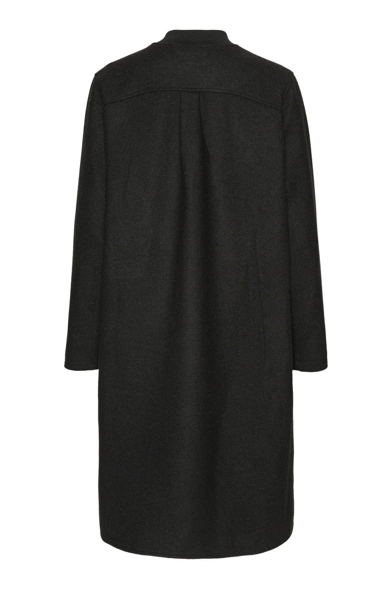 A long and A-line wool coat featuring a soft lining for added comfort. Side slits with logo horn button allow easy movement, while the two-way logo zipper and soft ribbed collar and cuffs add a sporty finish. Ideal as a mid-layer under a raincoat for extra warmth.