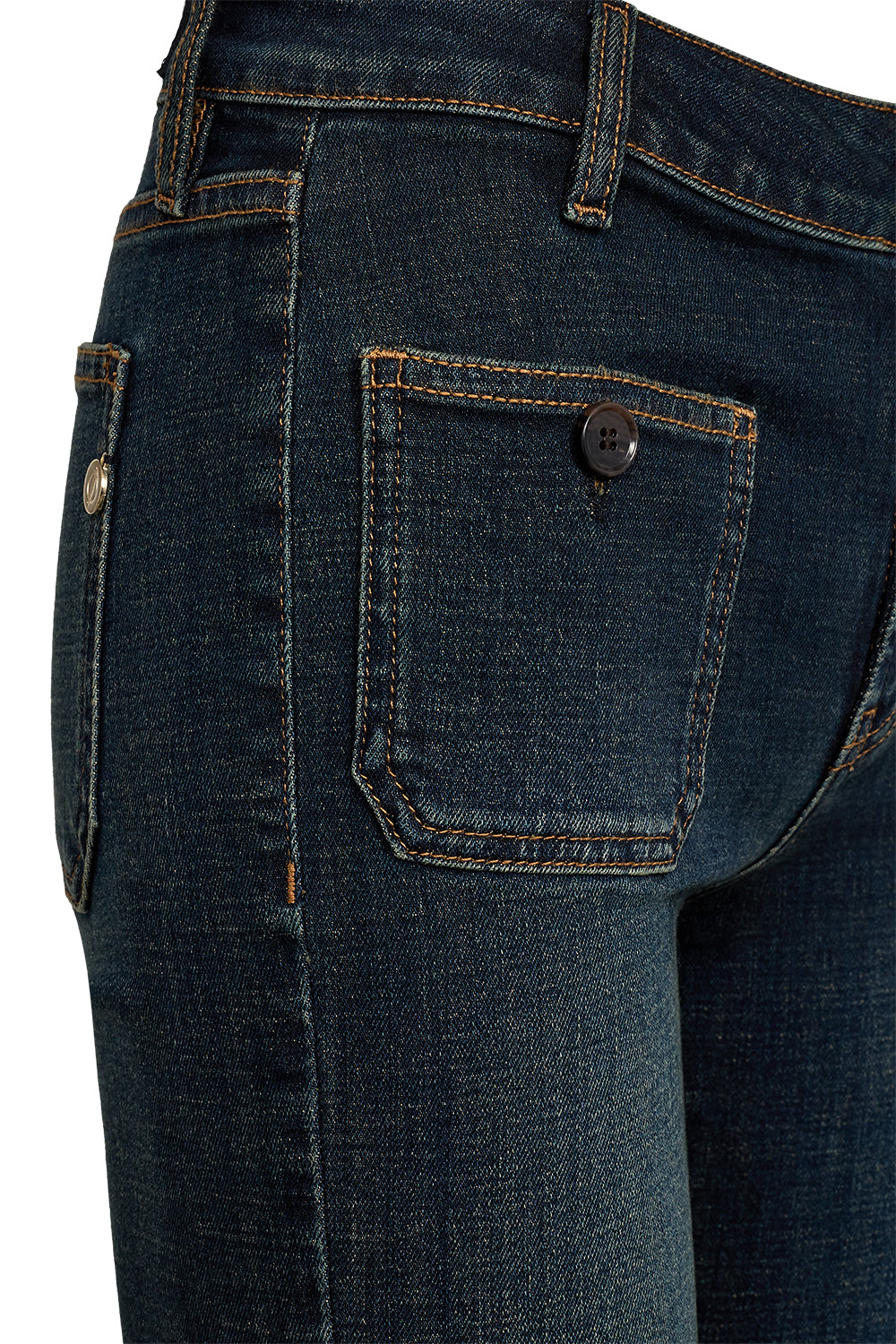 The Jelena 70s Jeans channel a retro-inspired silhouette with modern ease. Crafted from soft, stretch-infused denim, they feature a flattering mid waist and slim fit through the thigh before subtly flaring at the hem.